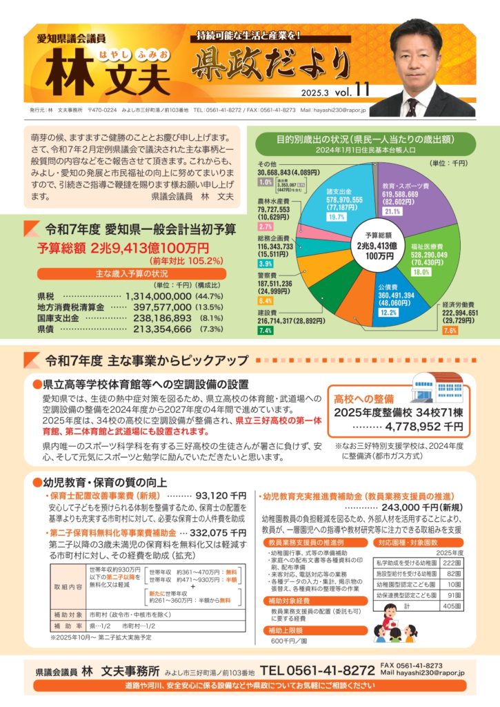 林 文夫 公式サイト > 県政だより > 県政だより 2025.03 県政だより vol.11 2025年3月1日 「県政だより」のPDF版ダウンロードはこちら Post Share Pocket Hatena LINE URLコピー -県政だより